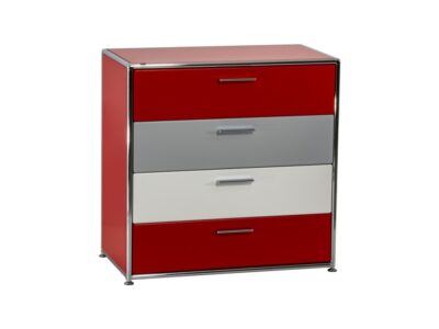 STEELCASE; Sideboard; Serie “FLEXBOX”; 1-Feld breit; 3 Felder hoch; Maße: ca. 90 x 120 x 62 cm (BxHxT); Flügeltüren (2 OH); Regal oben offen (1 OH); Stellfüße; Farbe: Korpus Akazie; Front und Rückseite Weiss;