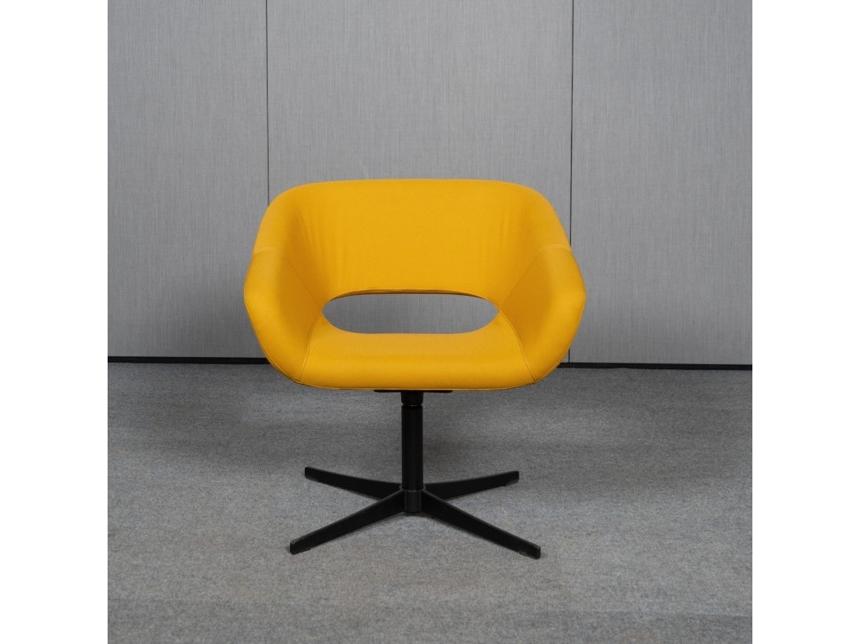 Das 4‑Fuß-Gestell aus schwarz lackiertem Metall sorgt für eine ruhige, stabile Positionierung. Der Sessel eignet sich ideal für Lounge- und Wartebereiche.