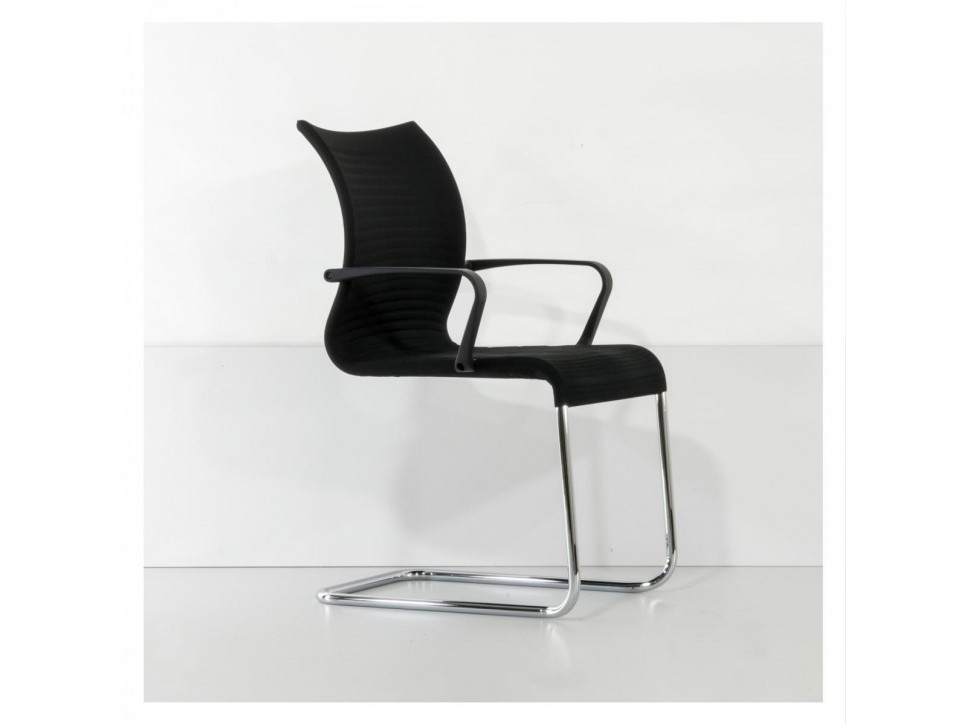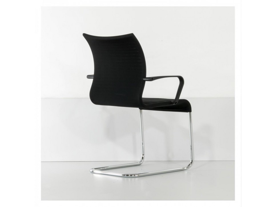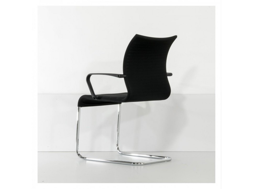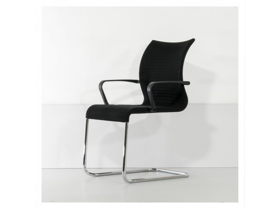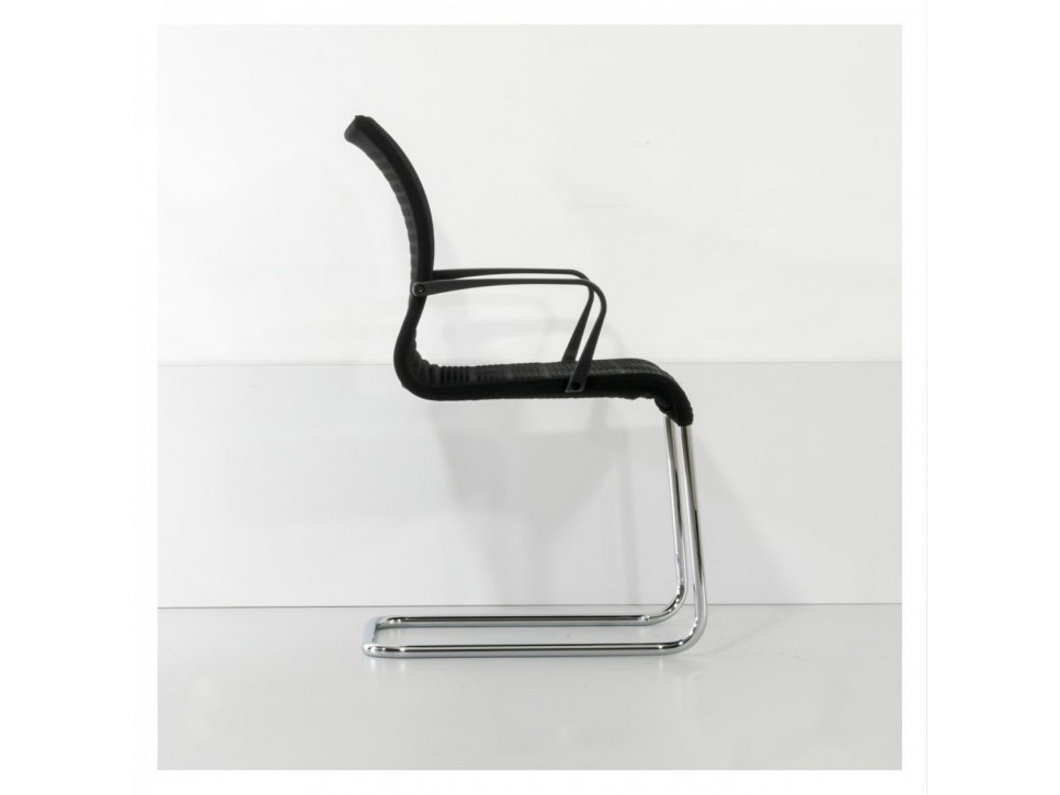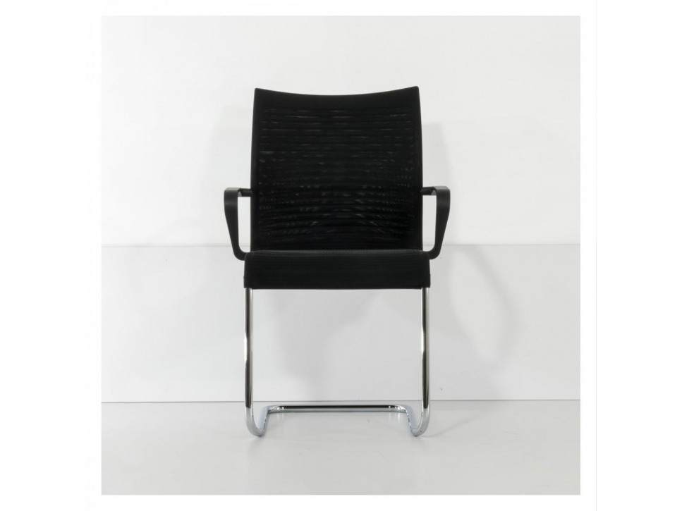 Die atmungsaktive 3D-Netzbespannung sorgt für angenehmen Halt, während das chromglänzende Freischwingergestell ein dynamisches Sitzgefühl unterstützt.