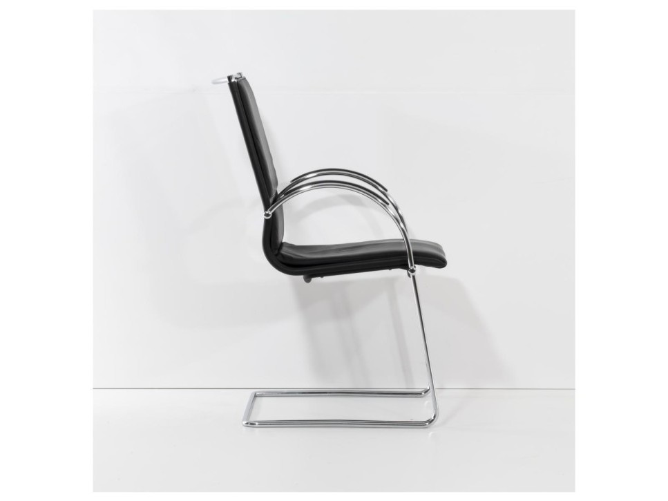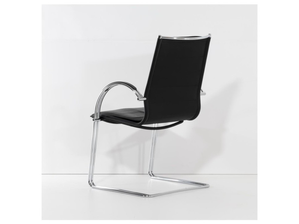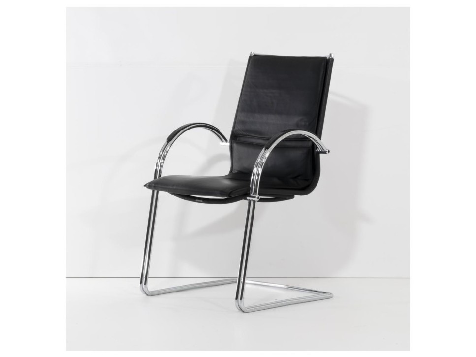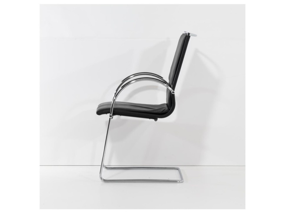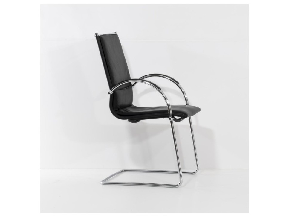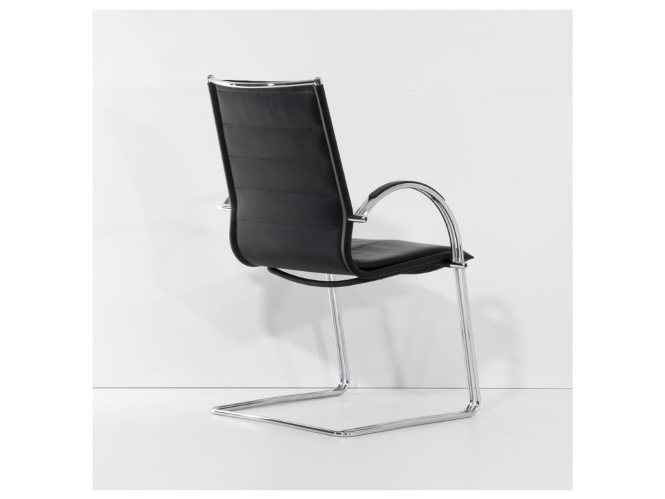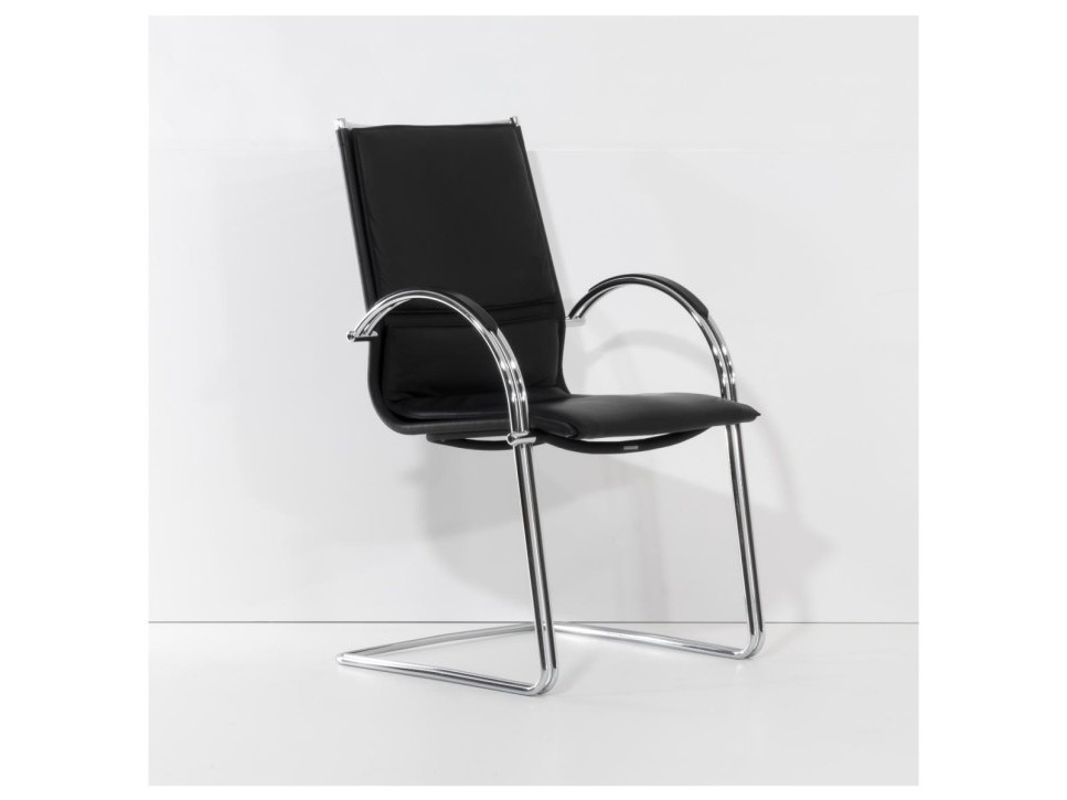 Die vollständig lederbezogene Sitz- und Rückenfläche bietet hohen Komfort und vermittelt eine zurückhaltende Eleganz, die in anspruchsvollen Konferenz- und Besprechungsbereichen besonders geschätzt wird.