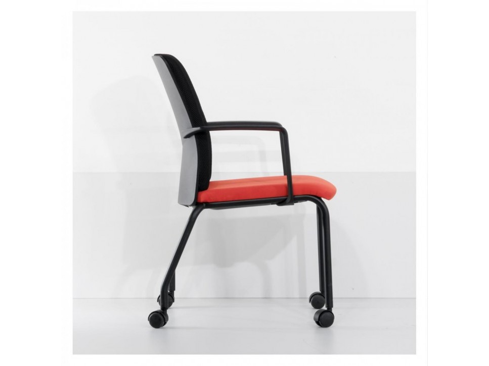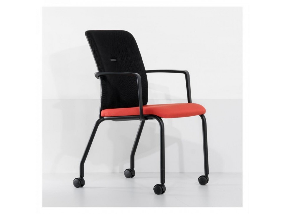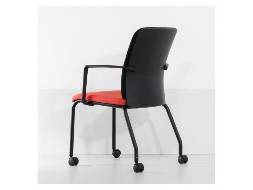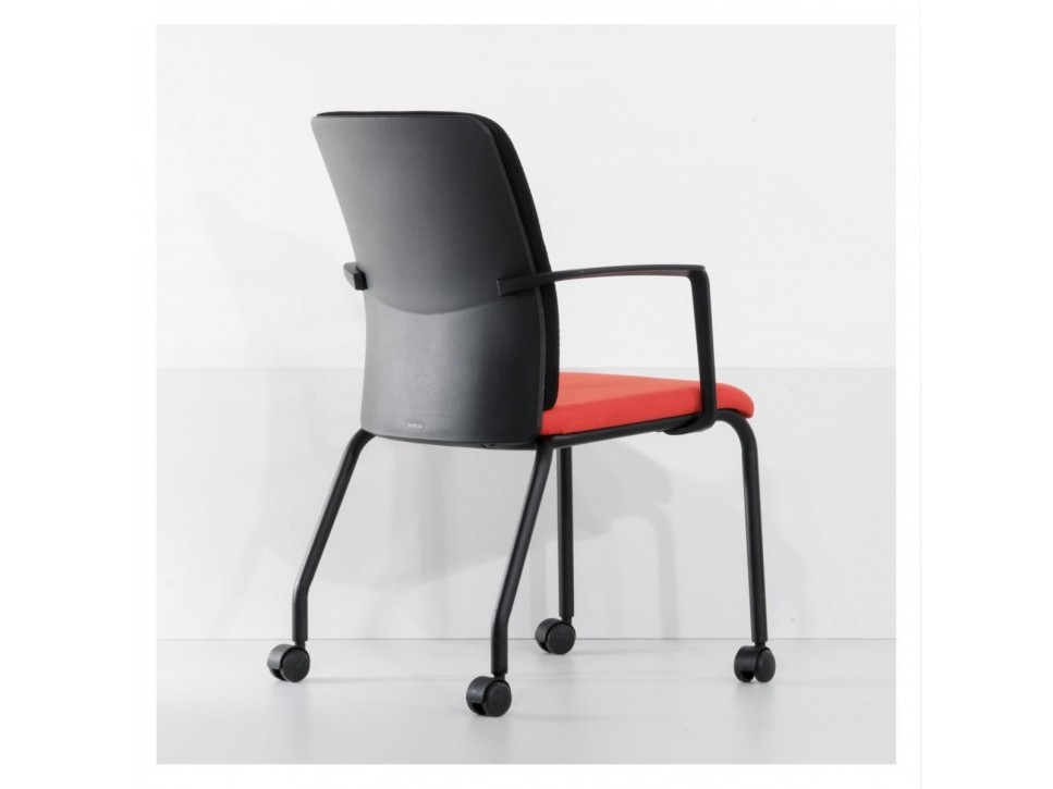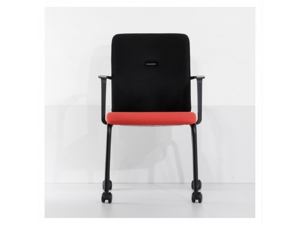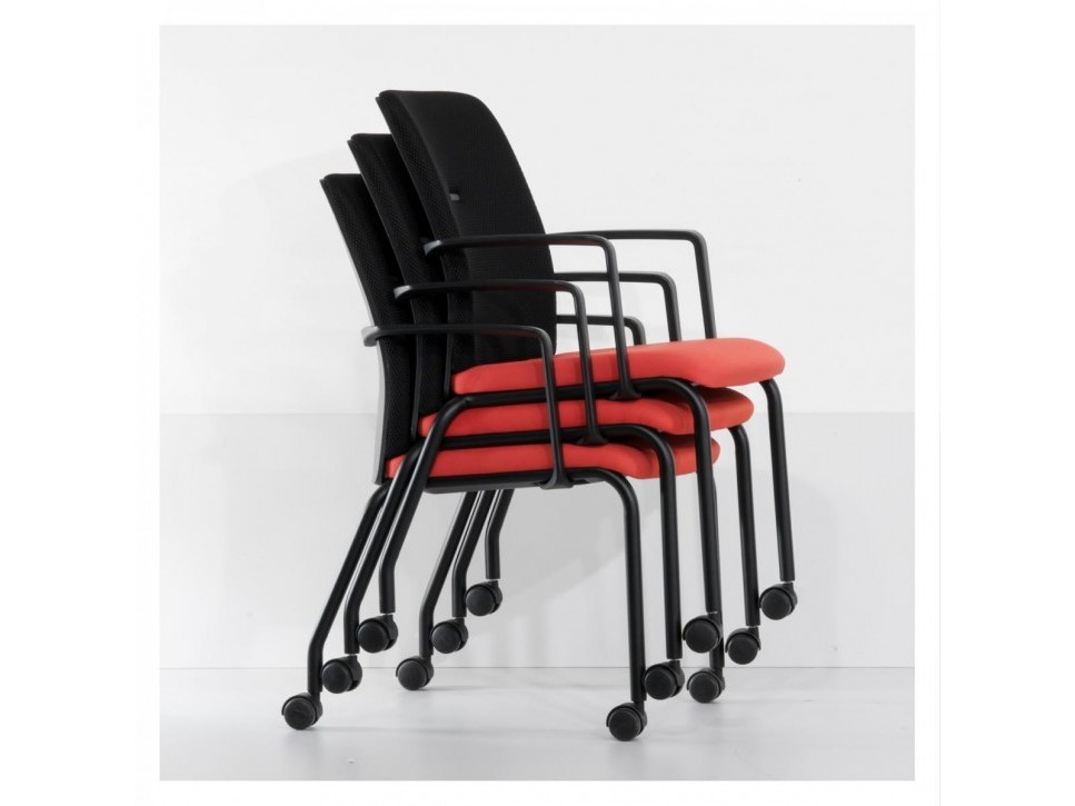 Das Gestell aus schwarzem Rundrohr ist mit integrierten Armlehnen ausgestattet und trägt vier Rollen, die ein einfaches Verschieben im Raum erlauben. Gleichzeitig ist der Stuhl stapelbar, wodurch sich mehrere Exemplare platzsparend lagern lassen. Durch die angenehme Polsterung und die ausgewogene Sitzgeometrie bietet der Northside auch bei längeren Konferenzen guten Sitzkomfort.