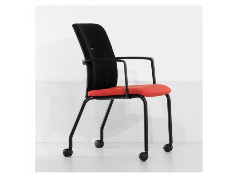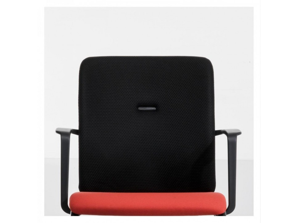 Die gepolsterte Sitzfläche in Rotorange bildet einen farbigen Kontrast zur schwarzen 3D-Knit-Rückenlehne, die dank Netzstruktur eine gute Luftzirkulation ermöglicht.