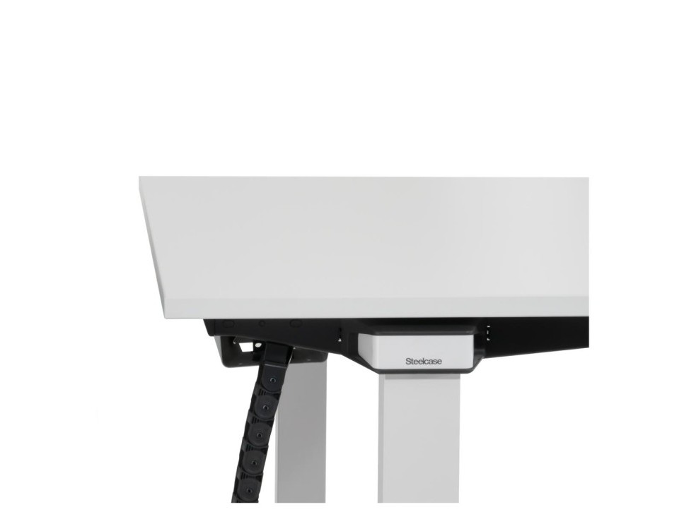 Der elektrisch höhenverstellbare Schreibtisch Ology von Steelcase bietet eine ergonomische Arbeitsfläche mit großer Bandbreite an Höheneinstellungen zwischen 68 und 120 cm.